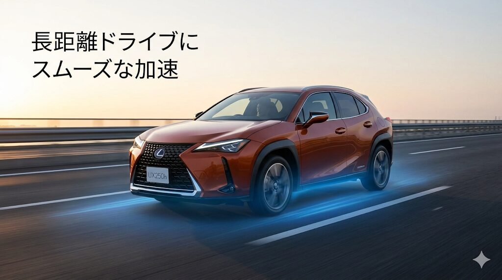 車選びにおいて「数字に表れない価値」を見極めるのも、大人の嗜みですよね。UX250hの最大の魅力は、燃費の良さ以上に「静粛性の高さ」と「滑らかな発進」にあると私は考えています。早朝や深夜の住宅街を静かにモーターだけで走り抜ける感覚は、プレミアムブランドであるレクサスを所有する喜びを強く実感させてくれます。