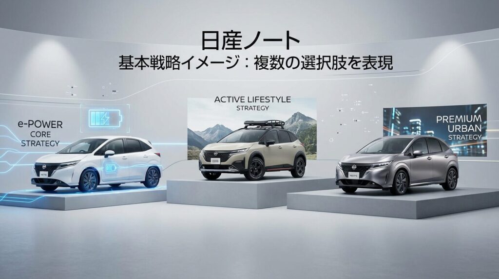 ノートのグレード選びを始める前に、まずは現行モデルの特徴と選択肢の全体像を把握することが重要です。2020年のフルモデルチェンジ以降、ノートは完全にe-POWER専用モデルとなり、従来のガソリン車ラインナップは廃止されました。この変更により、グレード構成もシンプルになった反面、オプション選択による総額の差が大きくなっています。
