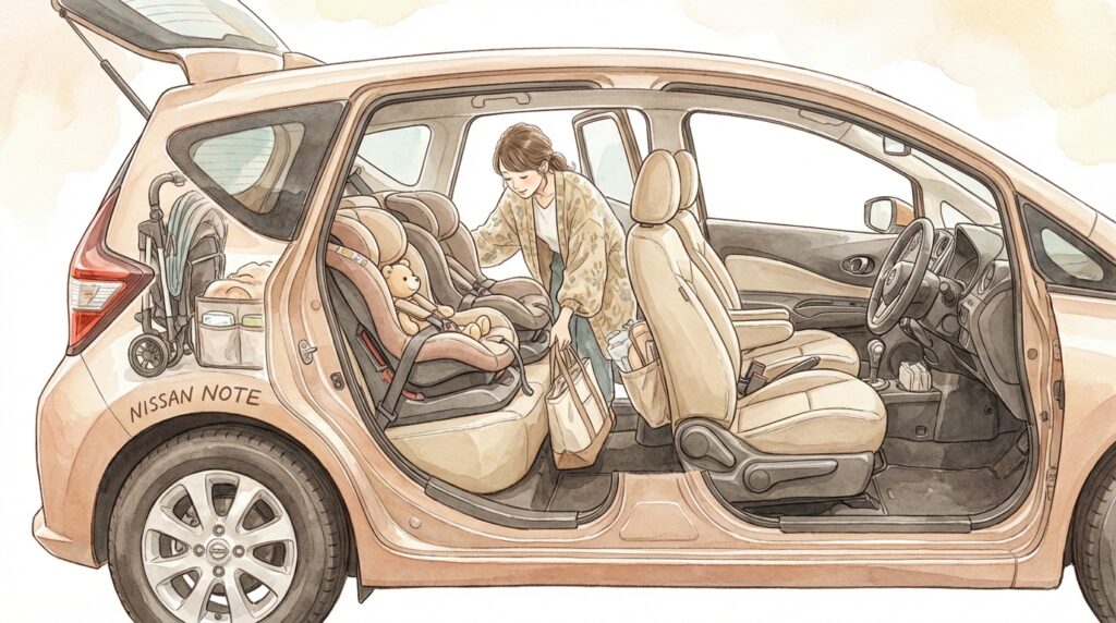 子育て中の家族にとって、車選びは単なる移動手段を選ぶだけじゃなくて、日常生活の質そのものを左右する重要な決断ですよね。ノートはそんな家族のニーズに応えるため、さまざまな工夫が凝らされています。