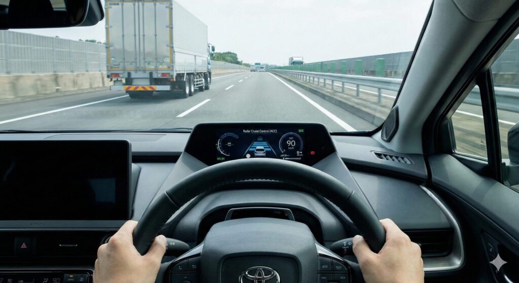 まず活用したいのが、標準装備されている「レーダークルーズコントロール(ACC)」です。これは設定した速度で前走車に追従してくれる便利な機能ですが、実は燃費走行のプロでもあります。