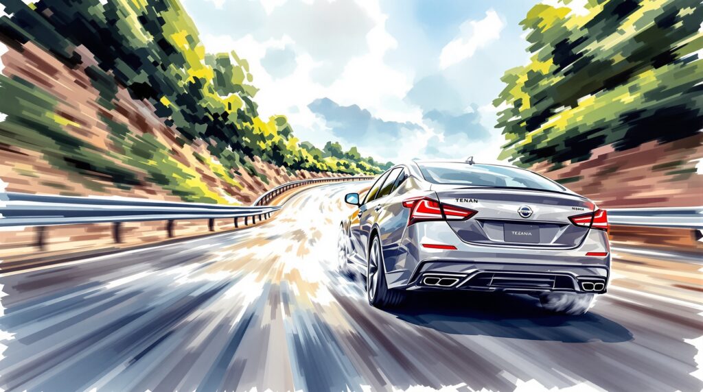 同クラスの競合車種と比較すると、新型ティアナの優位性は明確です。ホンダ・アコードの1.5リッターターボ(190馬力/240Nm)、トヨタ・カムリの2.5リッター自然吸気(178馬力/221Nm)、マツダ・アテンザの2.5リッターターボ(230馬力/420Nm)と比べても、パワーとトルクのバランスが絶妙なんですよ。