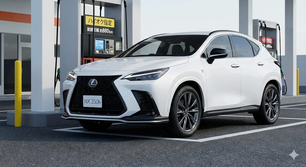 ここで衝撃の事実をお伝えします。先代のNX300hはレギュラーガソリン仕様でしたが、現行のNX 350hは「ハイオク(無鉛プレミアム)指定」です。