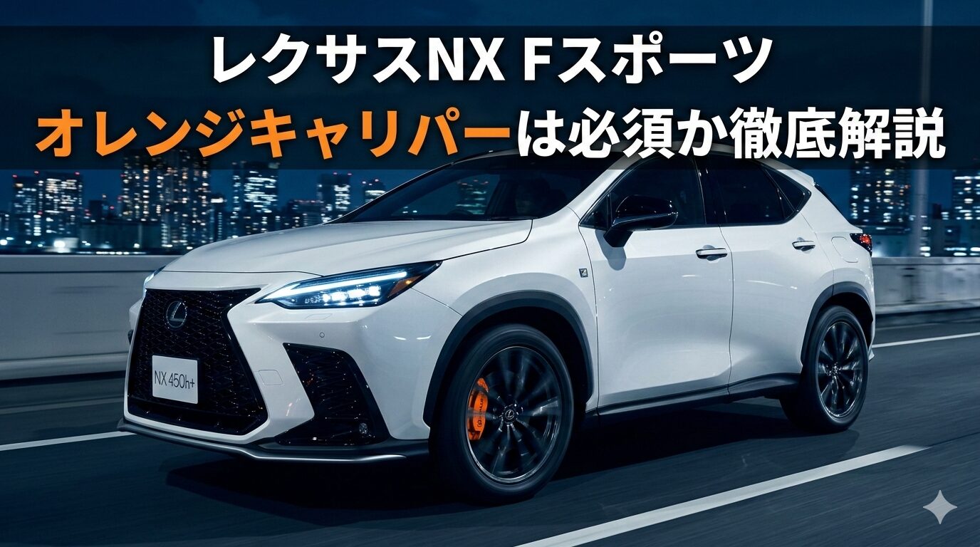 こんにちは。カーレビューラボ、運営者のuzuraです。レクサスNX Fスポーツの購入を検討していると、人気のメーカーオプションであるオレンジキャリパーを選ぶべきか、かなり迷いますよね。標準のブラック仕様と何が違うのか、価格に見合う価値があるのか、あるいは後付けできる仕様なのかなど、中古で探す際も含めて気になるポイントが多いかと思います。この記事では、自動車販売歴20年の私が、あなたの疑問に寄り添い、納得のいく車選びができるように情報をまとめました